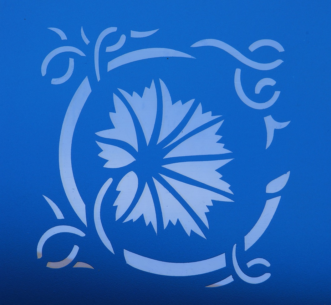 Diese exquisite Überfangglas-Ecke in sattem Tiefblau ist ein zeitloses Zierelement. Das kunstvolle Blütenranken-Motiv wird durch präzises Schleifen in die Buntglasecke eingearbeitet, was für eine brillante Lichtbrechung und einen eleganten, kontrastreichen Look sorgt. Ideal zur stilvollen Veredelung von Türen und Fenstern.