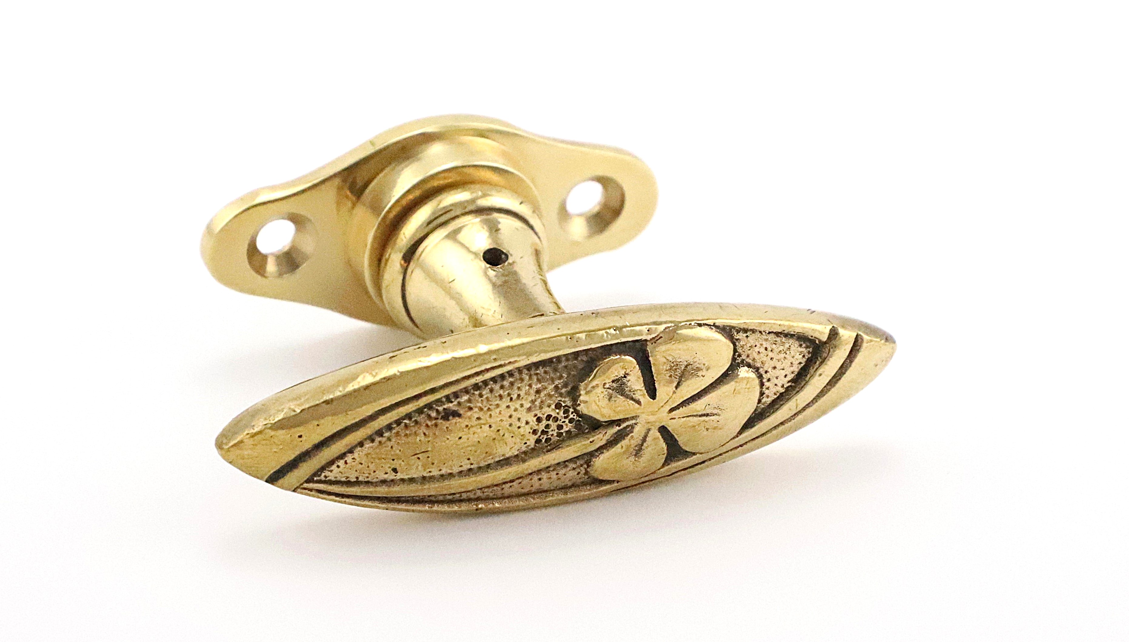 Diese Fensteroliven werden mit einer passenden 43 mm Fußplattenrosette und M 5 Linsen/Schlitz Gewindeschrauben versendet. Ein 7 mm Vierkantstift wird eingepasst.