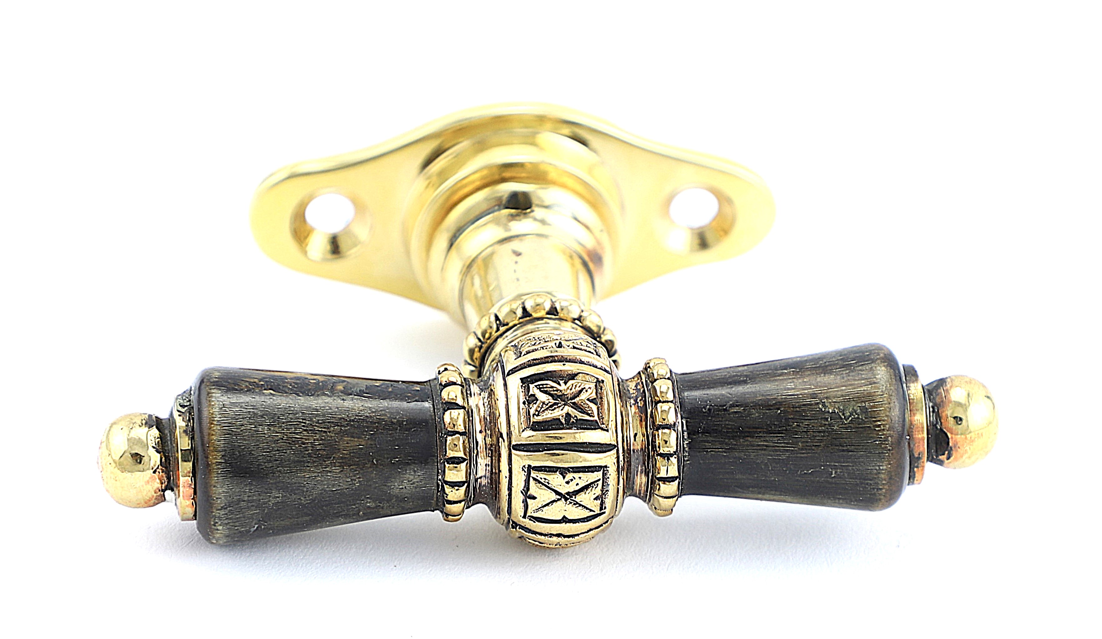 Diese Fensteroliven werden mit einer passenden 43 mm Fußplattenrosette und M 5 Linsen/Schlitz Gewindeschrauben versendet. Ein 7 mm Vierkantstift wird eingepasst.
