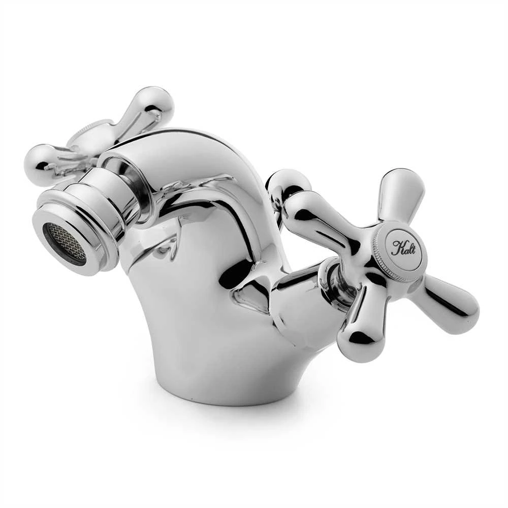 Bidetarmatur mit einer Zugstangen-Ablaufgarnitur aus Messing.