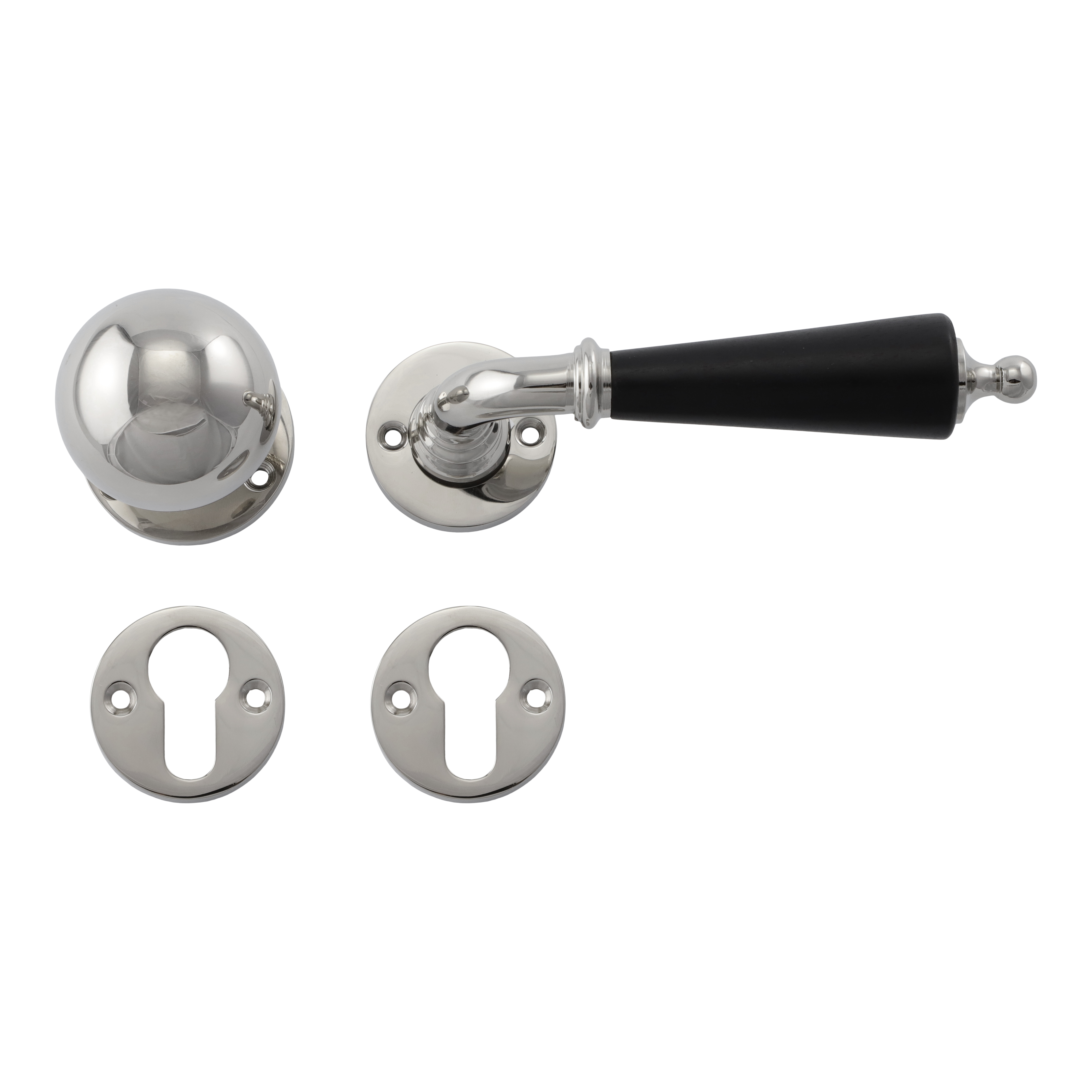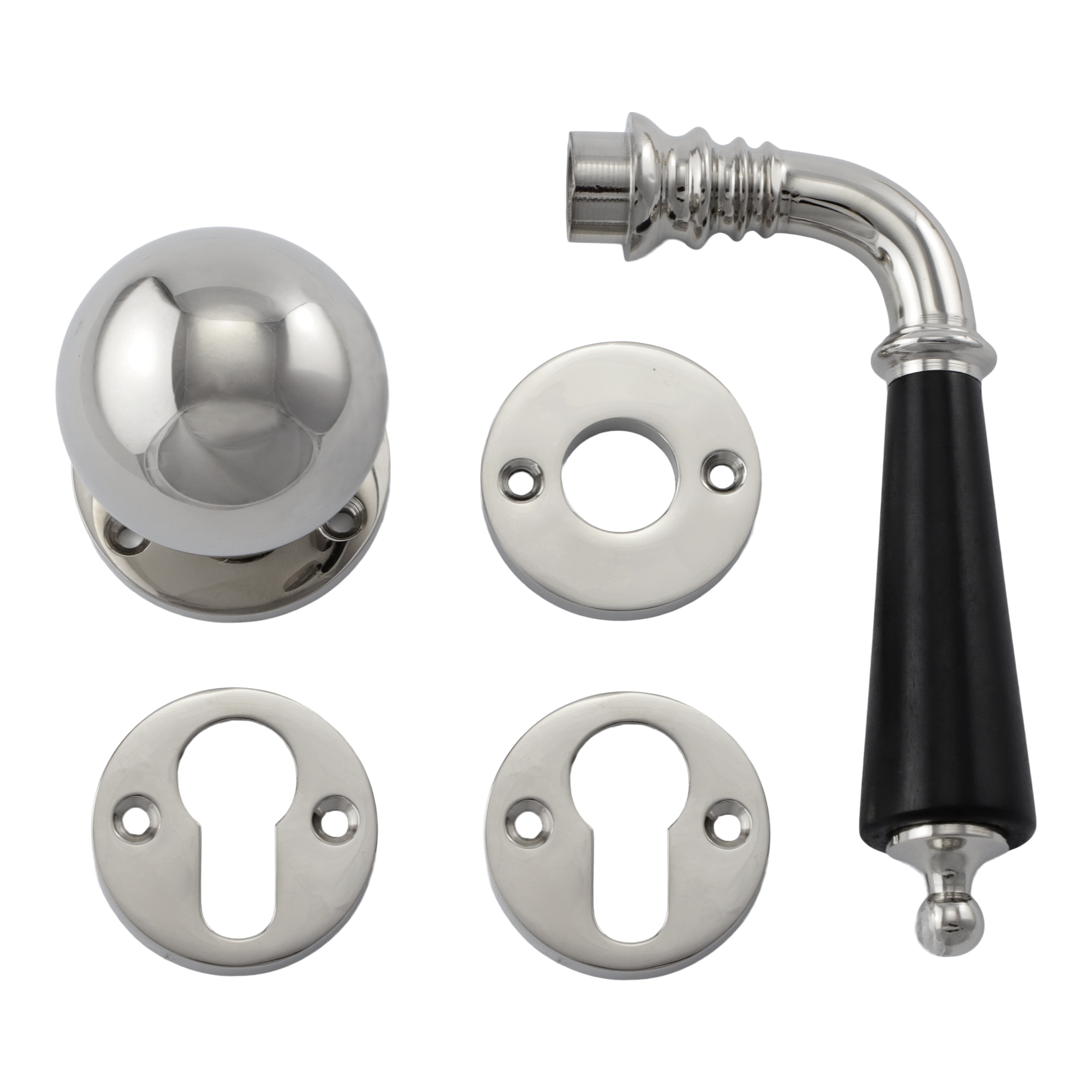 331.0013.10 Haustür-Garnitur Türgriffe mit Knauf Jugendstil Nickel poliert DIN links