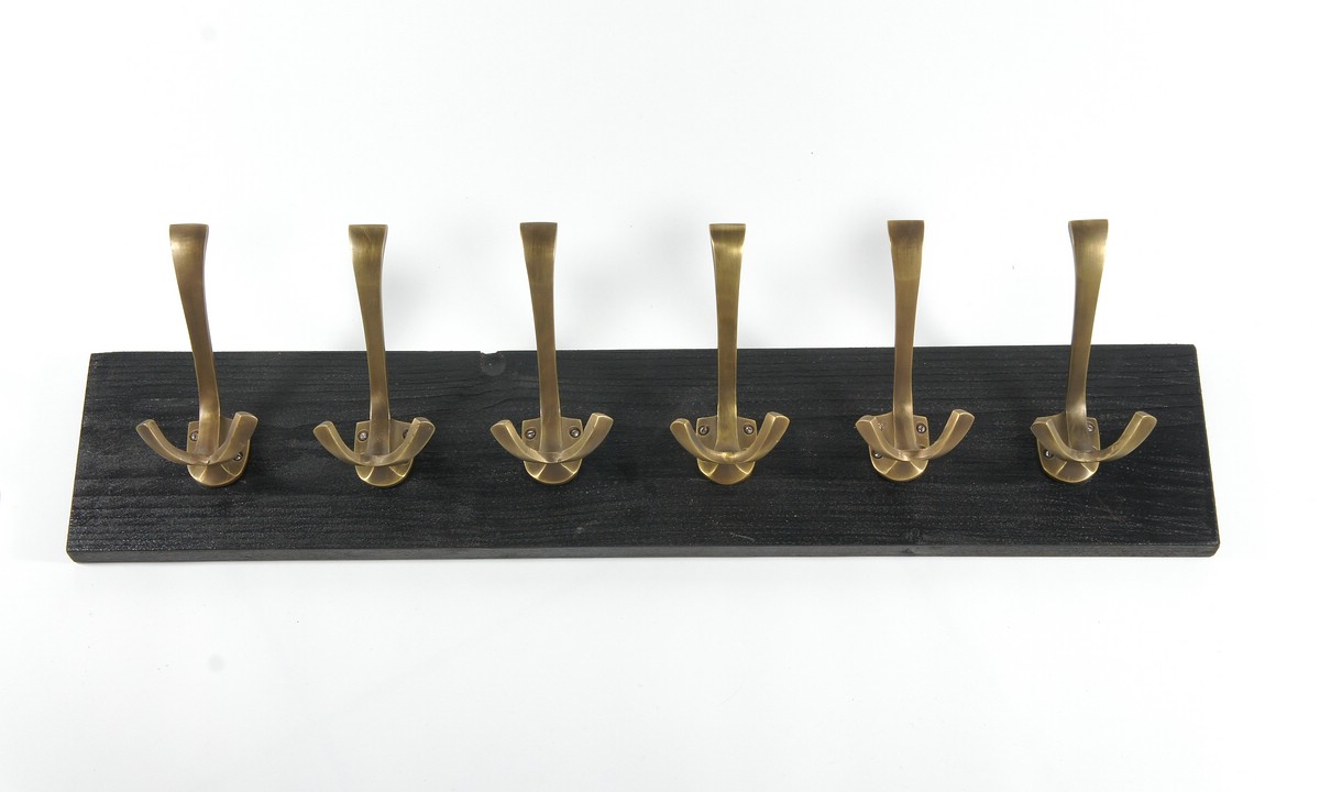 Hochwertiger JCB-Wandhaken aus Messing patiniert mit breiter und schmaler Aufhängegelegenheit.